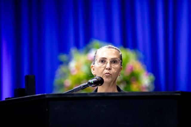 Discursando em nome dos Diretores, Professora Sueli, destacou a trajetória vivenciada pelos formandos ao longo da graduação. “Cada etapa da vida acadêmica é marcada por desafios, aprendizados e escolhas que moldam o profissional e o ser humano. O compromisso com a profissão deve acompanhar cada um de vocês por toda a caminhada”, afirmou, ressaltando a importância da ética, da responsabilidade e da dedicação contínua.