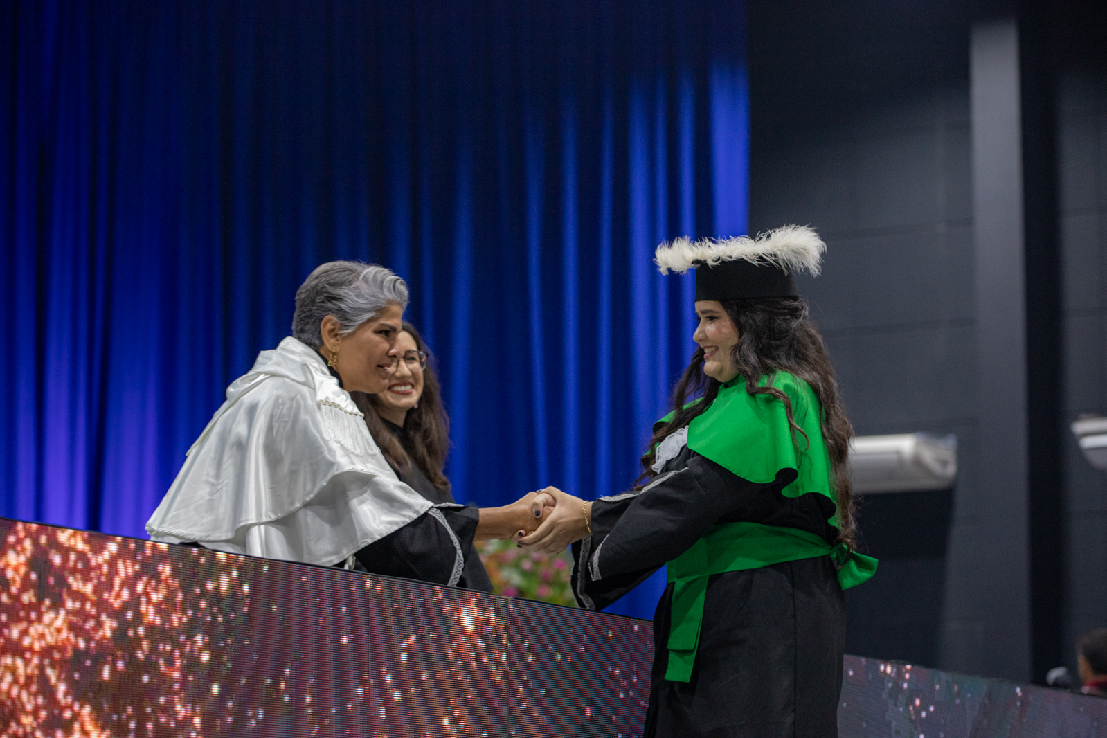 Encerrando os discursos da noite, a Pró-reitora de Graduação, destacou a jornada acadêmica e parabenizou a todos pela conclusão de seus cursos. “Hoje celebramos, acima de tudo, os formandos, que protagonistas desta conquista construída com esforço, disciplina e perseverança. Cada etapa vencida ao longo da trajetória acadêmica reflete o comprometimento de cada um de vocês com o próprio futuro. Parabenizo a todos por essa vitória e desejo que levem consigo o conhecimento, os valores e a confiança necessários para alcançar grandes realizações. Fique com Deus,” finalizou a Professora.