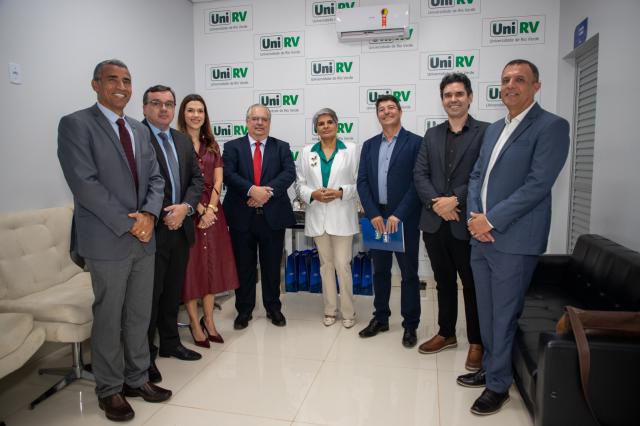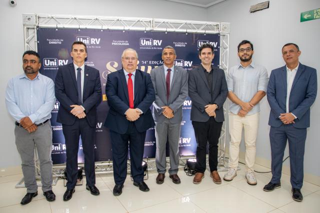 A solenidade de abertura contou com a presença do Reitor, Professor Dr. Alberto Barella Netto; do Pró-Reitor de Assuntos Estudantis, Professor Dr. Arício Vieira da Silva; da Procuradora-Geral da UniRV, Professora Dra. Muriel Amaral Jacob; do Professor Dr. Jammes Miller Bessa, representando o presidente da OAB Subseção de Rio Verde, Dr. Alessandro Gil Moraes Ribeiro; da diretora da Faculdade de Direito, Professora Dra. Línia Dayana Lopes Machado; da diretora da Faculdade de Psicologia, Professora Dra. Sueli Pereira Caixeta; do coordenador do evento, Professor Dr. Eduardo Álvares de Oliveira; além da acadêmica Isabela Amaral, representante do corpo discente.