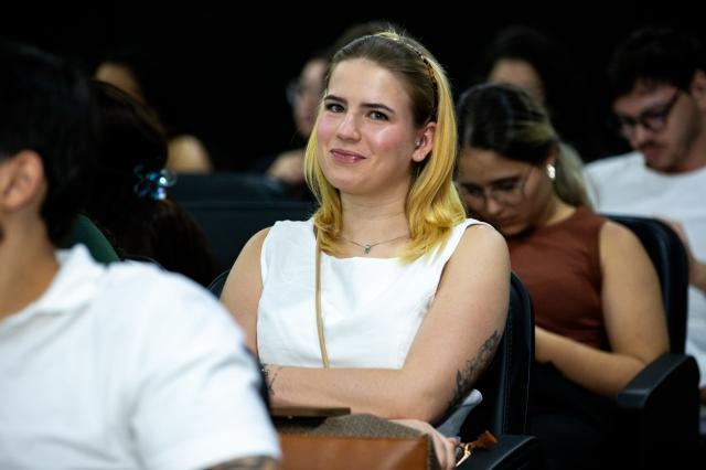 Nathália Carneiro abordou sua trajetória acadêmica e atuação na odontopediatria hospitalar, destacando a importância do cuidado humanizado. “Trabalhar com crianças em ambiente hospitalar requer sensibilidade e preparo. Ao longo da minha formação, busquei me especializar para oferecer um atendimento que vá além do técnico, valorizando também o acolhimento e o bem-estar dos pacientes”, explicou.