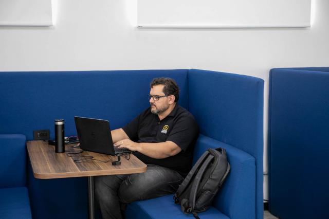 Os familiares que não podem se desconectar do trabalho podem usufruir do espaço coworking, ambiente climatizado, com acesso a internet e climatizado, reforçando o cuidado e a atenção da instituição com todos os envolvidos no processo.