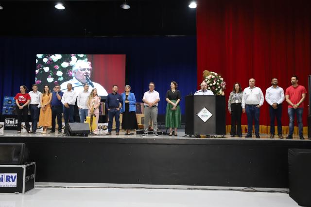 Em nome da igreja católica, o Padre Humberto Vieira conduziu uma mensagem voltada à esperança, à fraternidade e ao agradecimento. Ele ressaltou que cada conquista alcançada pela UniRV ao longo do ano é resultado da disposição em servir ao próximo.